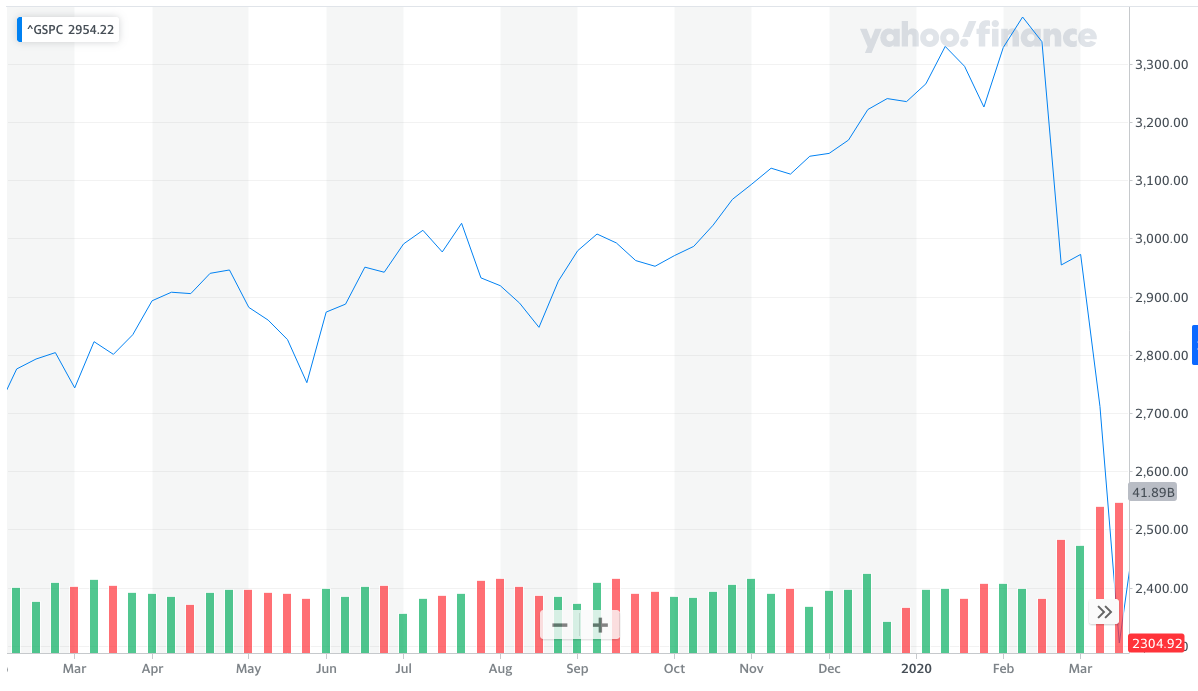 The below graph is the S&P 500 taking a nose dive of negative 20 percent between Feb 11, 2020, to Mar 17, 200.